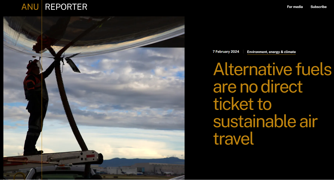 An article I wrote for the ANU Reporter on the environmental impacts of sustainable aviation fuels.
