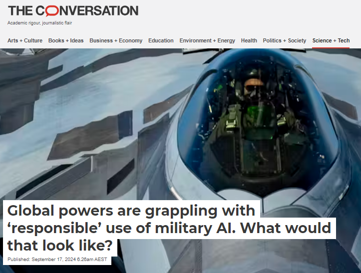 An article I wrote for The Conversation on the second REAIM Summit held in Seoul, Korea in September. The article provides some additional context on the key theme of REAIM - Responsible AI - and explores what this might look like in practice in military contexts.